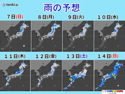 一方、東北の太平洋側と関東から九州は晴れる日が多く、空気の乾燥が続く見込みです。12日(金)頃までは、まとまった雨はないでしょう。