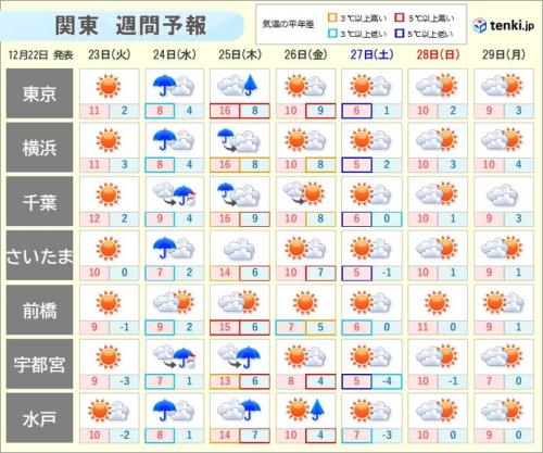 ●24日(水)から25日(木)は天気が崩れる 週末は今季一番の寒さに
