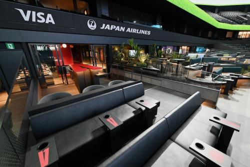 また、テラススイートに隣接するラウンジでは、東京と世界各国の料理を組み合わせた食事をビュッフェ形式で提供するほか、JALの機内や空港ラウンジで提供実績のあるアイスコーヒーや、空港ラウンジのコーヒー粉を使ったオリジナルクラフトジン「Re FLY」を用意する。定員は最大276名で、ラウンジアクセス付きの観戦シートも販売する。1シーズンごとの販売で、1口(2席)216万円から。