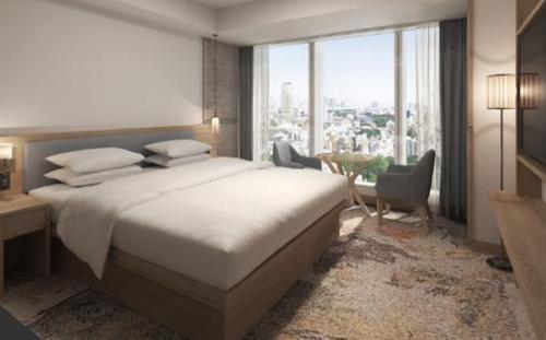 「コートヤード・バイ・マリオット」ブランドは神奈川県内では初めて。リブランドに合わせて全客室の改装を行う。インテリアデザインはドイルコレクションが担当し、東海道新幹線の開通とともに発展を遂げてきた歴史を背景に、豊かな自然にも恵まれている新横浜の街の美しさを、落ち着いた色調に対し柔らかい照明で表現する。203室の客室数はそのままに、コネクティングルームを2箇所新設するほか、大型の荷物を携行したままでもゆったりとチェックイン・チェックアウトできるよう、10階ロビー空間を拡張する。12階のラウンジもデザインを一新する。
