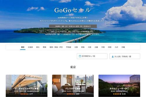 一休は、旅行予約サイト「一休.com」で、「GoGoセール」を9月9日正午から10日まで開催している。