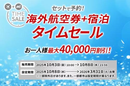 ジャルパックは、「JAL海外ダイナミックパッケージ期間限定タイムセール」を10月8日まで実施している。