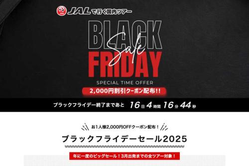 オリオンツアーは、「ブラックフライデーセール」を11月21日午後4時から12月8日午後11時半まで開催している。